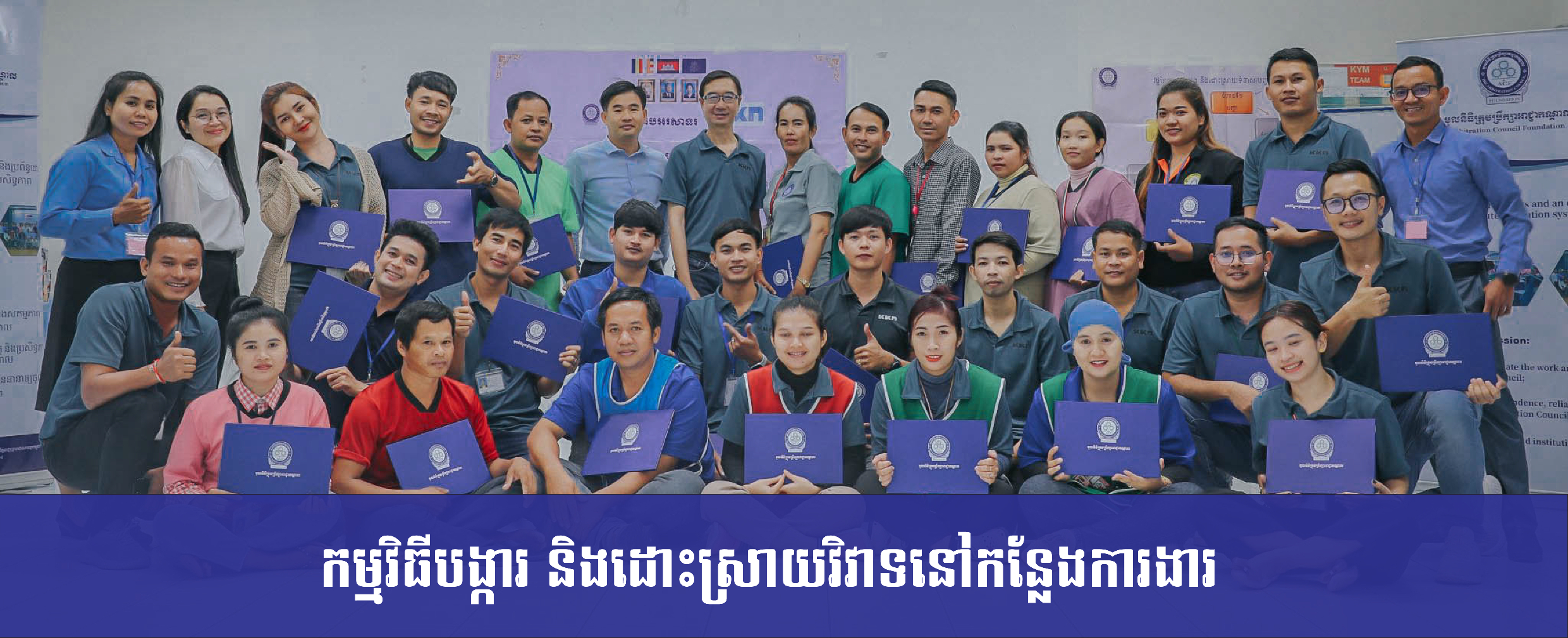 កម្មវិធីបង្ការ និងដោះស្រាយវិវាទការងារនៅកន្លែងធ្វើការ ត្រូវបានផ្តល់ជូនដល់រោងចក្រសហគ្រាសនានា ក្នុងគោលបំណងជួយដល់កម្មករនិយោជិត និងនិយោជក ក្នុងការដោះស្រាយបញ្ហាការងារ និងបញ្ហាផ្សេងៗដែលកំពុងកើតមាន មុនពេលបញ្ហាទាំងនោះក្លាយជាវិវាទ ឬ ជម្លោះ។ កម្មវិធីនេះមានគោលបំណងបំពាក់បំប៉ន និងពង្រឹងសិទ្ធិអំណាចរបស់កម្មករនិយោជិត និងតំណាងនិយោជក ដើម្បីឱ្យមានចំណេះដឹង និងមានភាពបុរេសកម្ម ក្នុងការដោះស្រាយវិវាទប្រកបដោយប្រសិទ្ធភាព និងប្រសិទ្ធផល។ កម្មវិធីនេះក៏បានផ្តល់ឱកាសដ៏ល្អសម្រាប់ភាគីទាំងអស់ ក្នុងការជួបគ្នាដោយផ្ទាល់ និងចូលរួមវគ្គបណ្តុះបណ្តាលជាមួយគ្នា ដើម្បីបានស្វែងយល់ពីទស្សនៈរបស់គ្នាទៅវិញទៅមក និងធ្វើការជាមួយគ្នាឆ្ពោះទៅរកការដោះស្រាយជម្លោះ ឬបញ្ហានានាប្រកបដោយឥរិយាបថស្ថាបនា។
